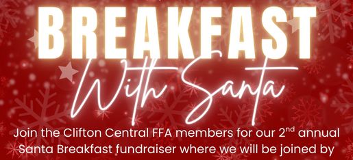 Joint the Clifton Central FFA members for our 2nd Annual Santa Breakfast Fundraiser where we will be joined by Santa himself!!